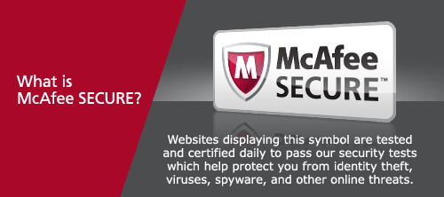 CERTIFIED mcafee SECURE SITE The mcafee SECURE™ trustmark only appears when the website has passed our intensive, daily security scan. We test for possible personal information access, links to dangerous sites, phishing, and other online dangers.